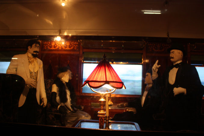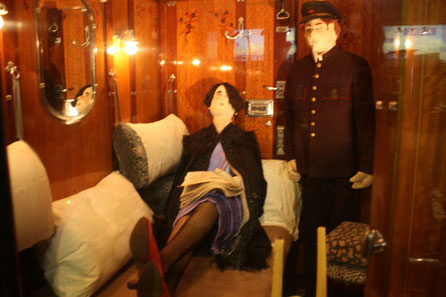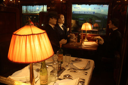 Une scénographie évoque le célèbre roman policier d'Agatha Christie, "Le crime de l'Orient-Express".