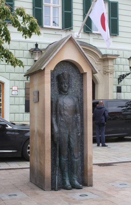 = Guérite avec soldat devant l'ambassade du Japon. Témoignage du système en place entre 1767 et 1860.