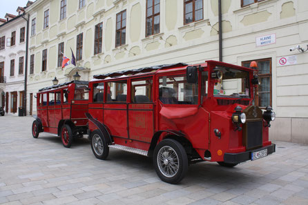 = Anciens véhicules de la ville devant le Palais du Gouverneur (Miestodržiteľský palác)